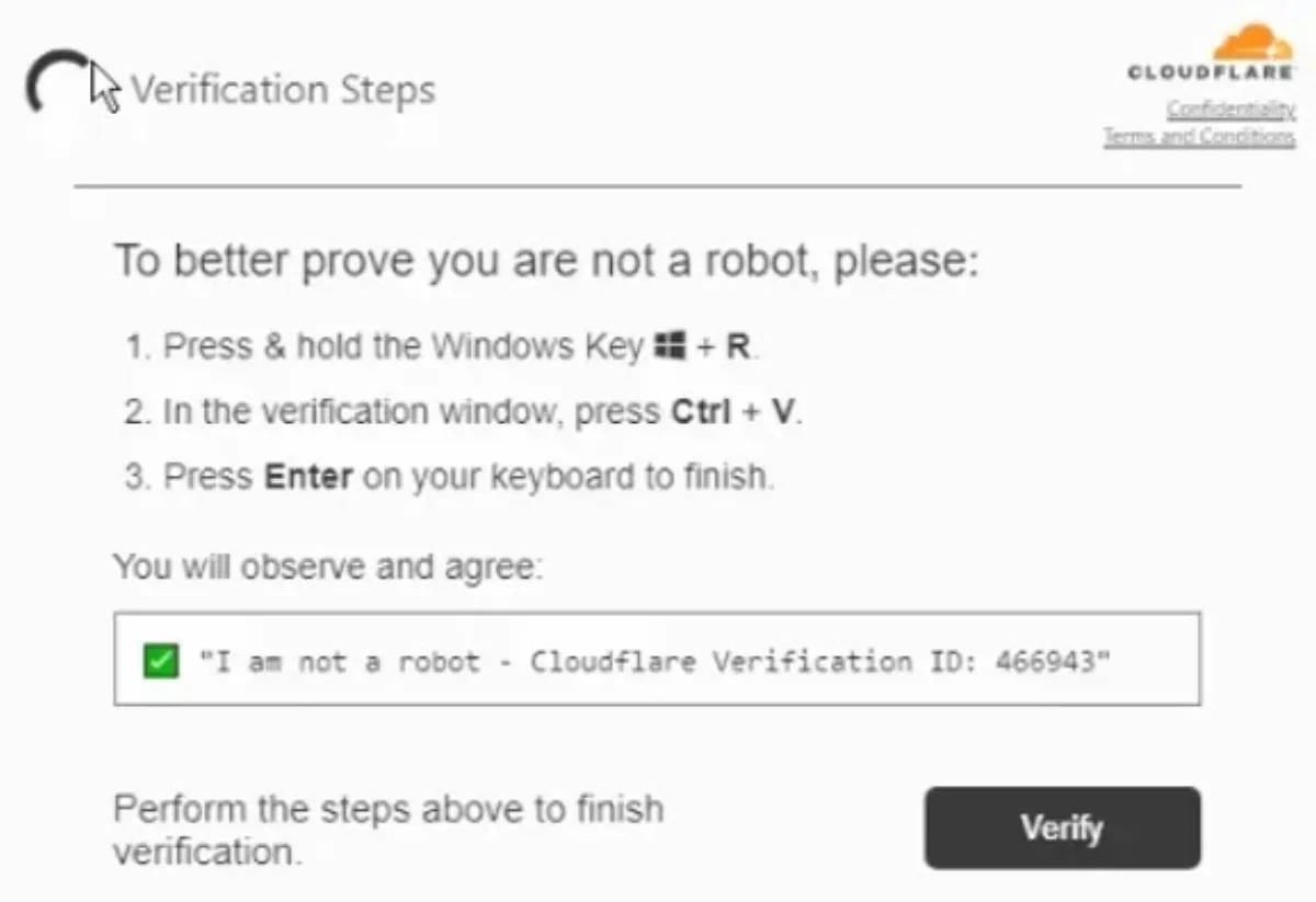 ClickFix uses prompts on web pages to persuade a user to run a command, often framed as an error fix or verification step. In the incidents analysed, the lure appeared on legitimate but compromised websites that users reached through normal browsing.
